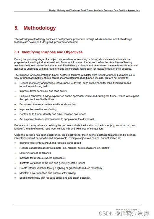 - 方法论概述了最佳实践程序,通过该程序开发、设计、采购和测试隧道内的美学设计特征。