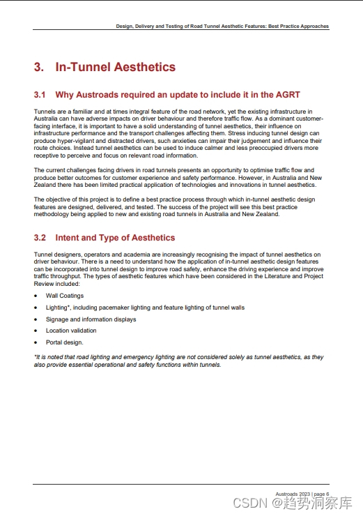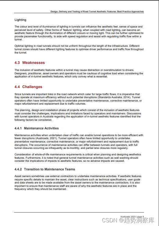 - 隧道是公路网络中熟悉且有时不可或缺的特征,但澳大利亚现有的基础设施可能对驾驶员行为和交通流量产生不利影响。
