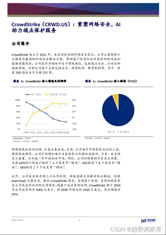 - CrowdStrike:全球终端网络安全龙头,推出Charlotte AI,持续赋能安全领域。