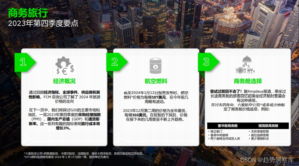 企业差旅管理:企业为了应对上涨的差旅成本,重新调整了差旅预算和政策。商务旅行者对2024年抱有更多信心,计划通过商务旅行来发展业务。