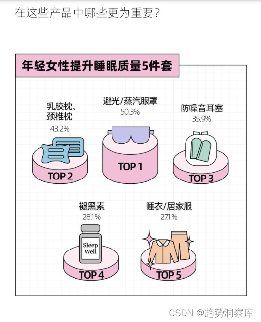 - 许多女性尝试通过各种方法(如刷手机、听助眠音乐等)来改善睡眠,但效果有限。