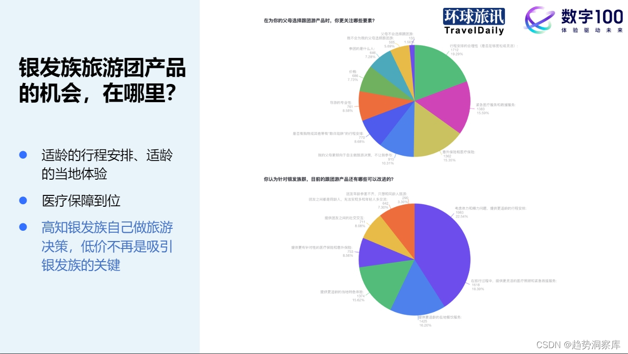 - 适龄的行程安排、适龄的当地体验和医疗保障是银发族旅游团产品的机遇。