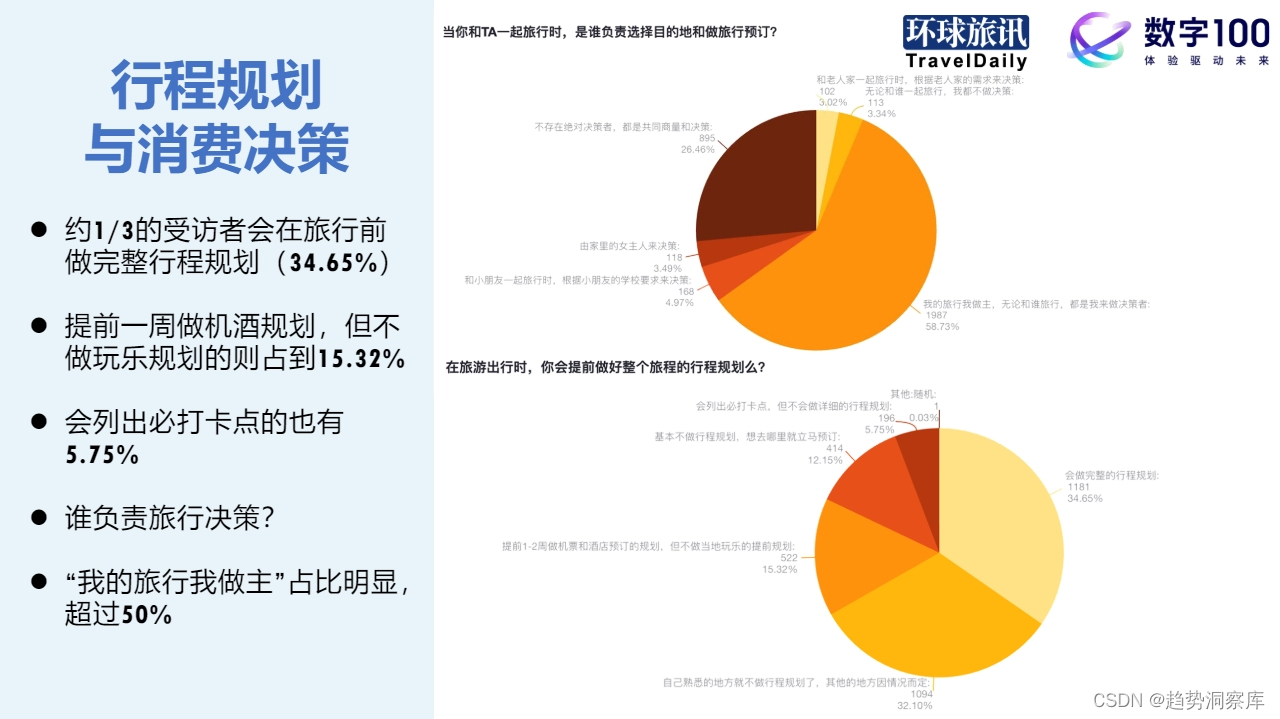 - 大约1/3的受访者会在旅行前做完整行程规划。
