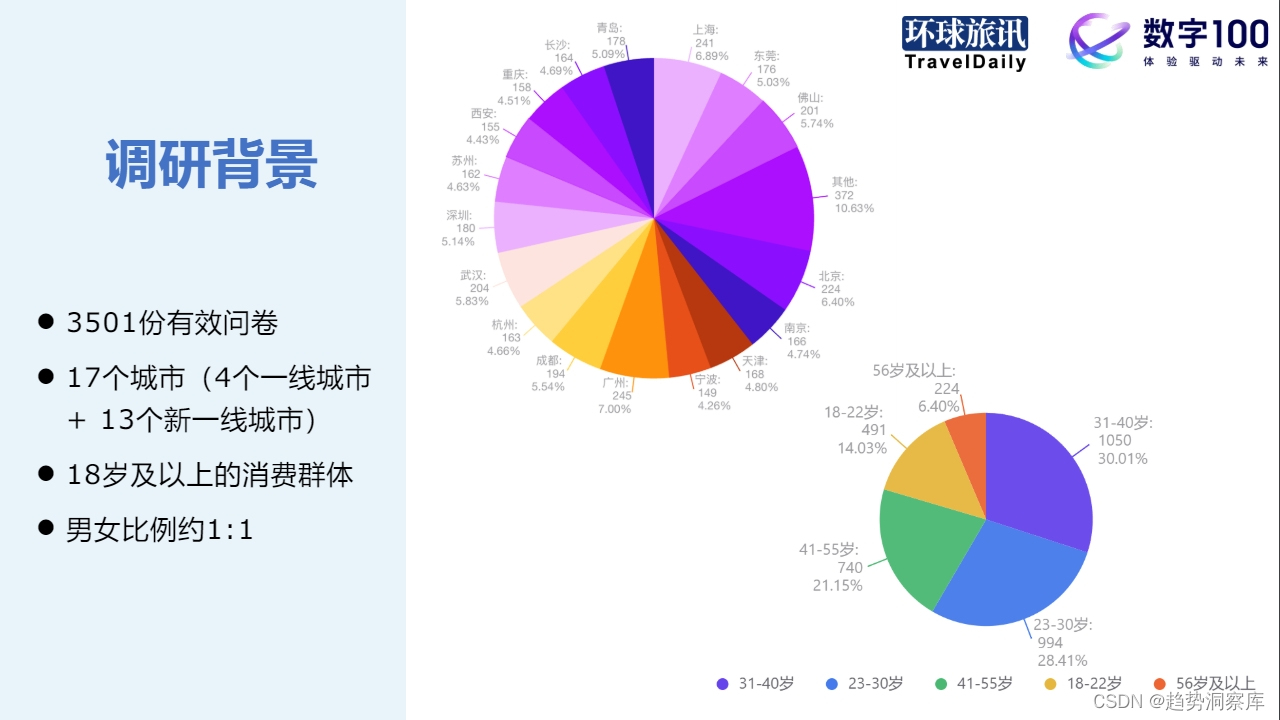 - 收集了3501份有效问卷,覆盖17个城市(包括4个一线城市和13个新一线城市),针对18岁及以上的消费群体,男女比例约1:1。
