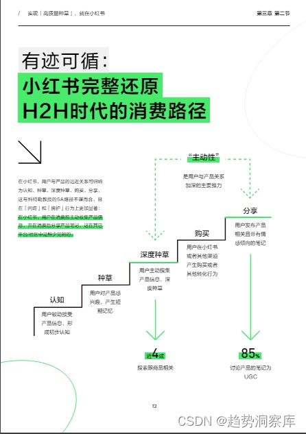小红书的营销策略:包括领导层对种草战略价值的认知、组织流程和衡量指标的一致性,以及科学种草的方法和自有模型。