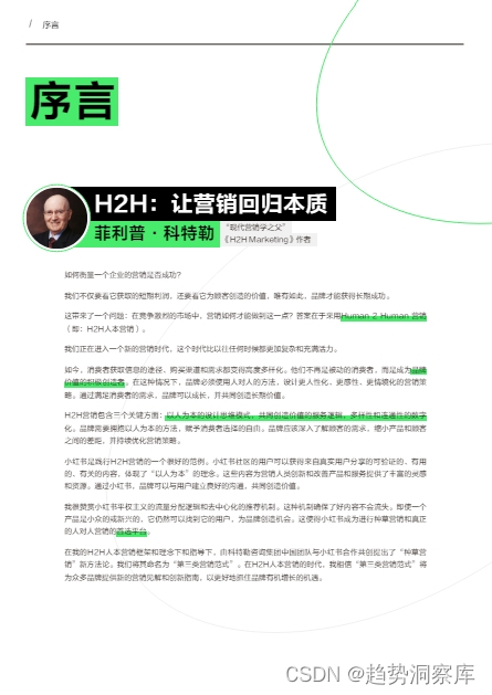 H2H人本营销理念:由菲利普·科特勒提出,强调营销应回归人本,通过Human 2 Human(H2H)的营销方式,设计更人性化、感性和情境化的营销策略。
