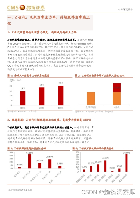 Z世代的消费影响力:Z世代作为消费新时代的主力军,具有前卫的消费观念和强劲的消费力,对服装行业贡献了强大的消费力。Z世代更偏好线上消费,推动了服饰消费的线上化发展。