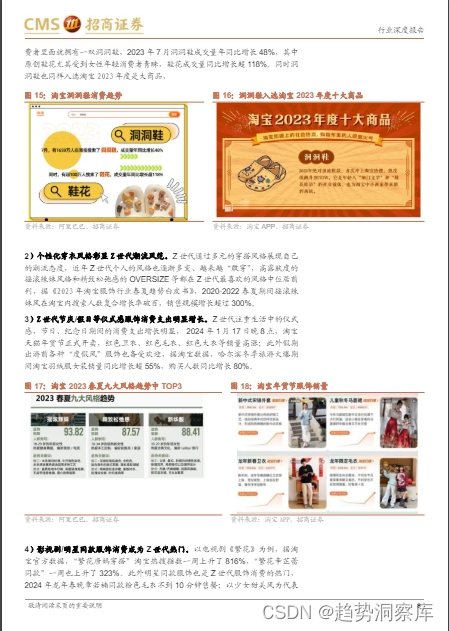悦己型服饰消费趋势案例:报告详细分析了基于圈层文化的服饰消费、个性化穿衣风格、节庆/假日服饰消费以及影视剧/明星同款服饰消费等趋势。