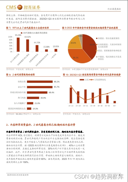 悦己经济的兴起:Z世代在消费中更注重情绪价值和个性化需求的满足,愿意为情绪付费和为内容买单。这体现在他们对悦己性商品的偏好,以及对时尚潮流的追求。
