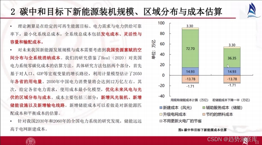 电力系统零碳化成本:中国电力系统零碳化的总投资成本约为67.6万亿元,其中储能设施的投资是最主要的成本。