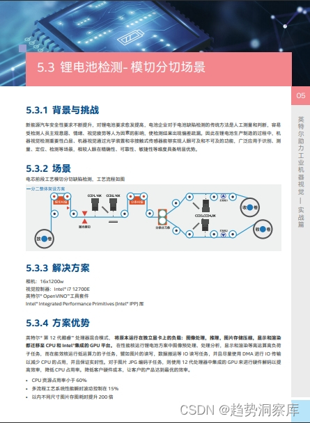 - 提供了英特尔在工业机器视觉领域的实际应用案例,如电池片EL/PL检测、晶圆表面和覆膜缺陷检测、锂电池检测等。