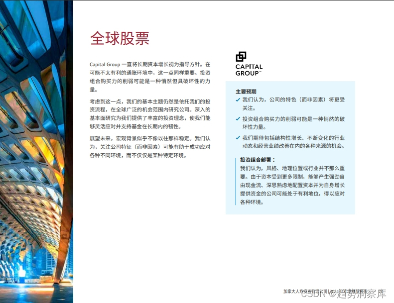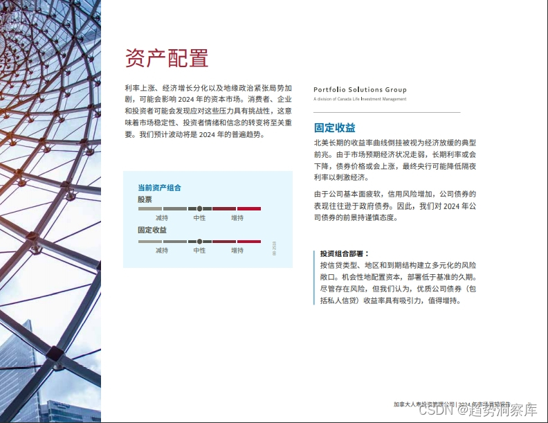 - 2024年资本市场可能受到利率上涨、经济增长分化和地缘政治紧张局势的影响。预计波动性将是普遍趋势。