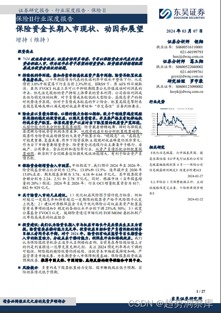 - 放宽公募基金FVOCI认定,鼓励险资通过市场化的FOF/MOM委托机制布局高成长的权益组合。