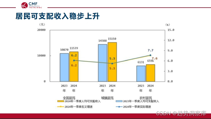 - 居民可支配收入稳步上升,一季度增长6.2%。