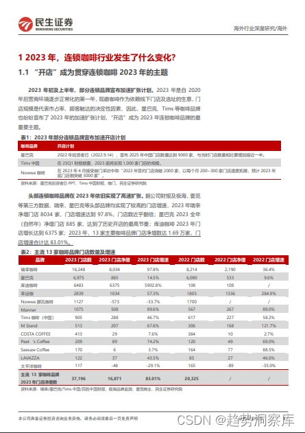 - 开店与关店并行,中小咖啡店面临淘汰,行业门店净增长约34.4%。