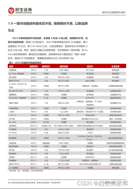 - 一级市场融资热度依旧,但融资规模有限,以新品牌为主。