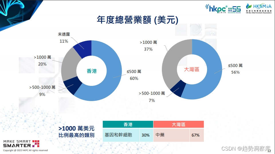 - 香港生命健康产业以中小企业为主,多数企业员工人数在50人以下。