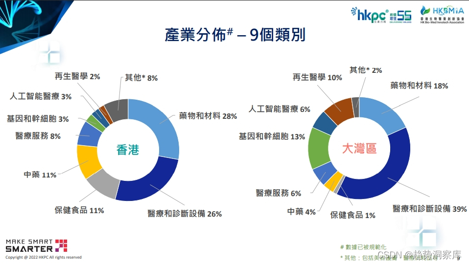 - 医疗和诊断设备占比最高,其次是药物和材料、保健食品等。