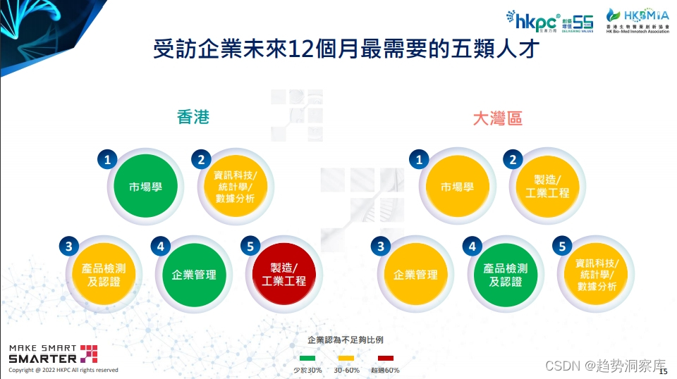 - 企业未来12个月最需要的人才包括市场学、信息科技/统计学/数据分析、产品检测及认证、制造/工业工程等。