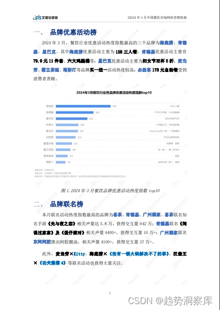 - 海底捞、肯德基、星巴克的优惠活动热度指数最高。