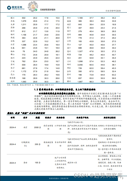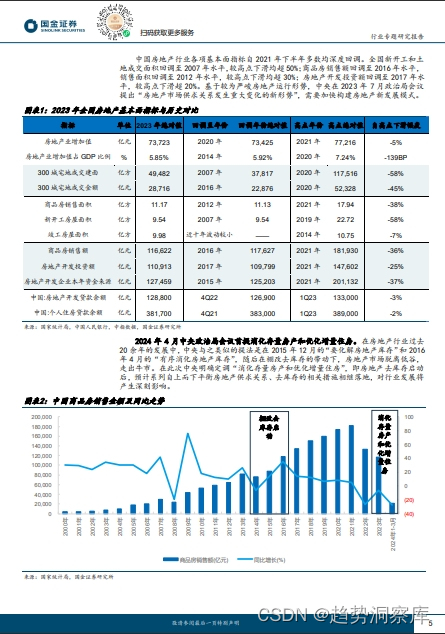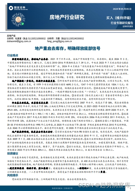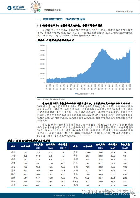供需两端去库存:为应对房地产市场销售下行和库存增加的问题,政策提出“消化存量房产和优化增量住房”,即房地产去库存。预计从供需两端发力,供给端通过控制供地,需求端通过以旧换新盘活存量。
