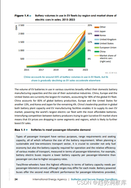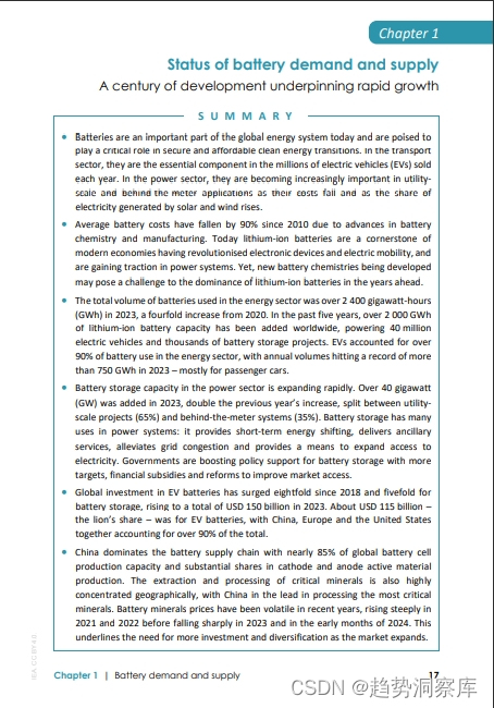 电池市场的未来展望:报告预测了电池需求的增长,特别是在电动汽车和电力存储领域的增长。