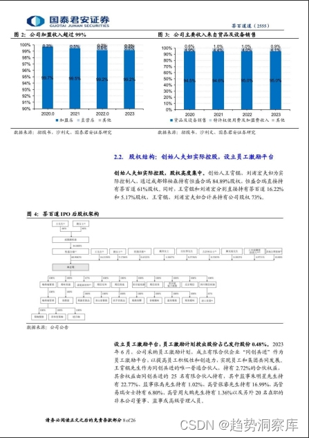 - 公司收入主要来自向加盟店销售货品及设备,加盟收入占比超过98%。