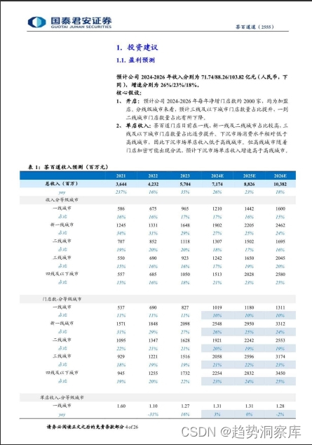 - 茶百道计划进一步加密二线及以下线级城市的门店。