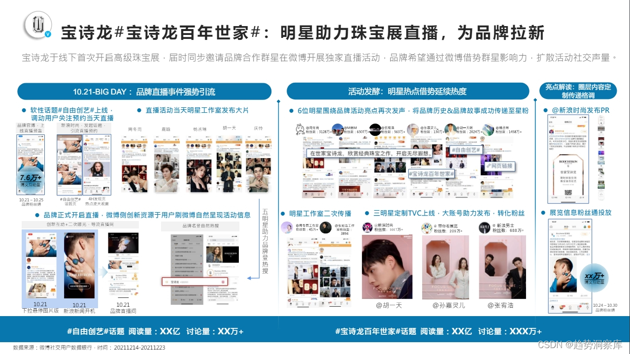 - 通过线下高级珠宝展和微博独家直播活动,利用群星影响力扩散活动社交声量。