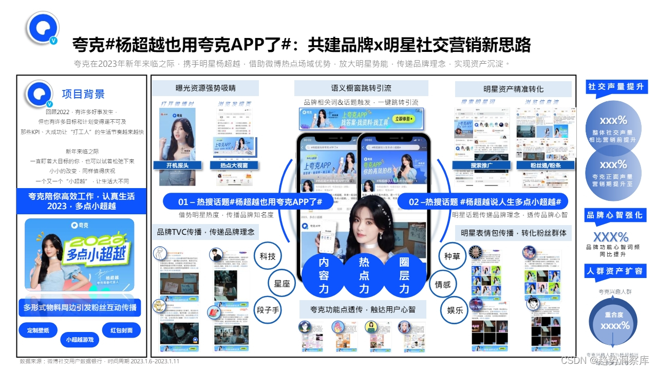 - 利用微博热点和明星杨超越的合作,在新年期间传递品牌理念,实现品牌资产沉淀。