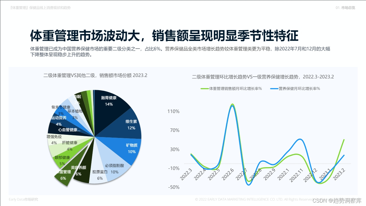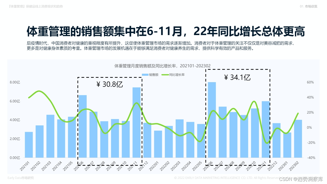 - 体重管理保健市场增长迅猛,年均增长率超20%。