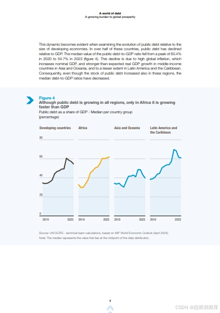 - 利率上升导致发展中国家公共预算紧张,高利率支付超过了健康、教育和气候行动等关键公共支出的增长。