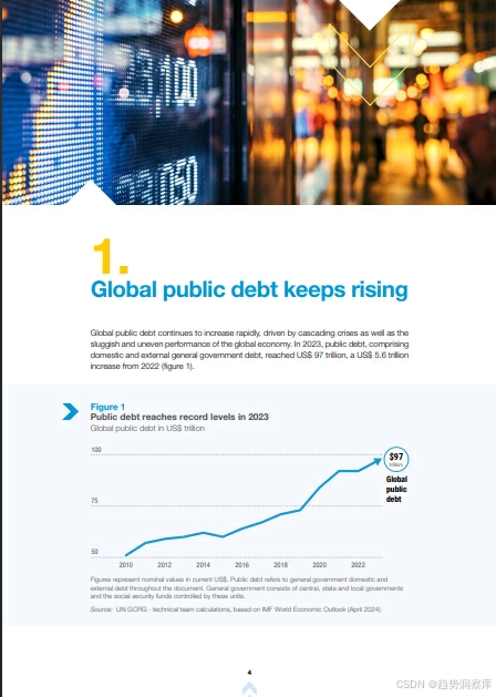 - 2023年全球公共债务达到97万亿美元,比2022年增加了5.6万亿美元。
