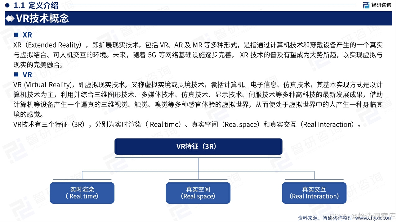 - 介绍了VR(虚拟现实)、AR(增强现实)、MR(混合现实)技术的概念和特征。