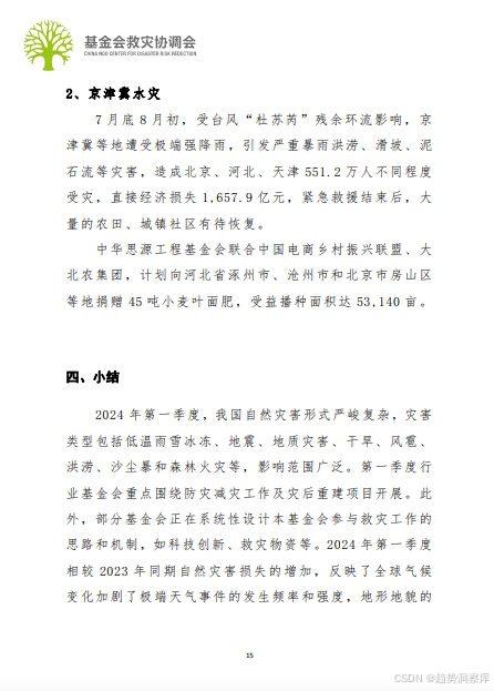 - 甘肃积石山6.2级地震:基金会提供“以工代赈”项目和灾后温暖券计划。