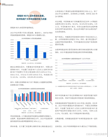 - 保租房REITs表现亮眼,2023年全年累计可供分配金额、基金收入、EBITDA等多项指标数据表现良好,底层项目出租率保持高位水平。