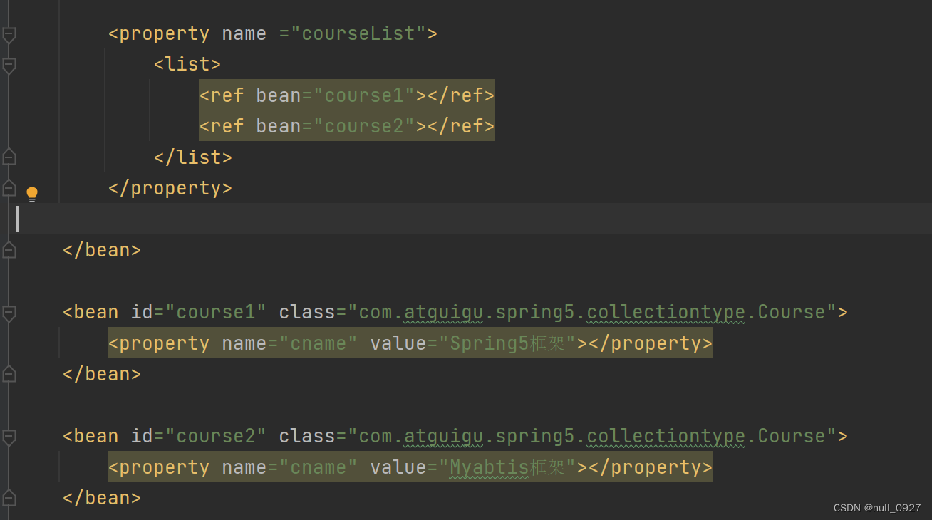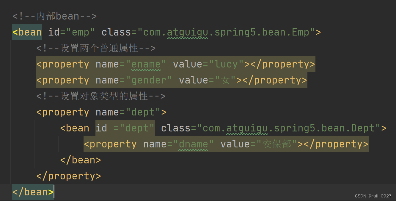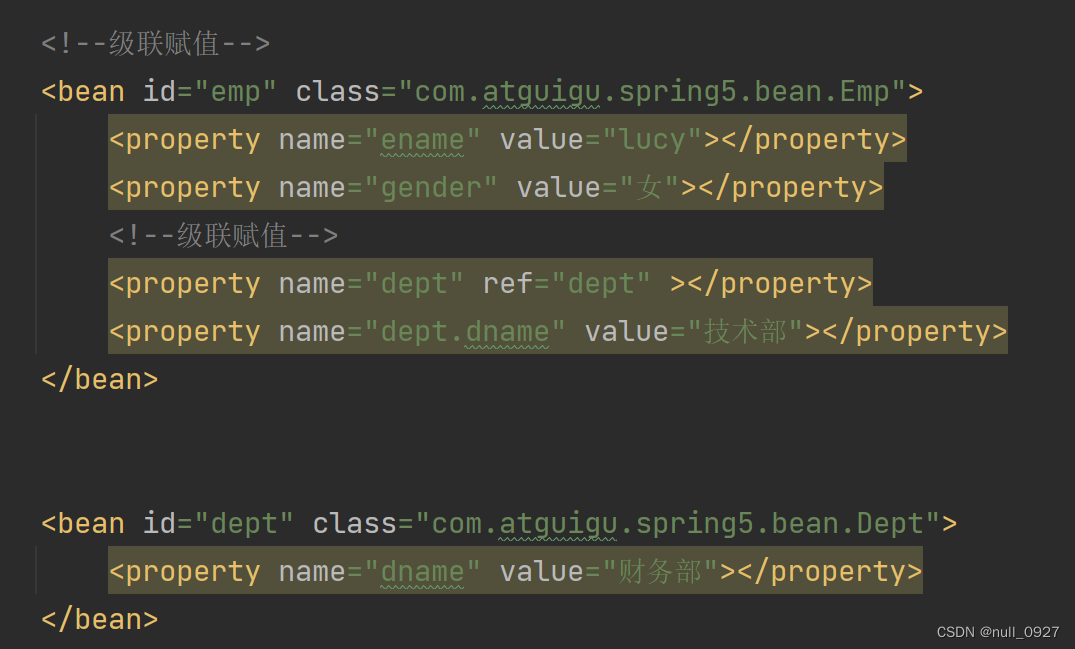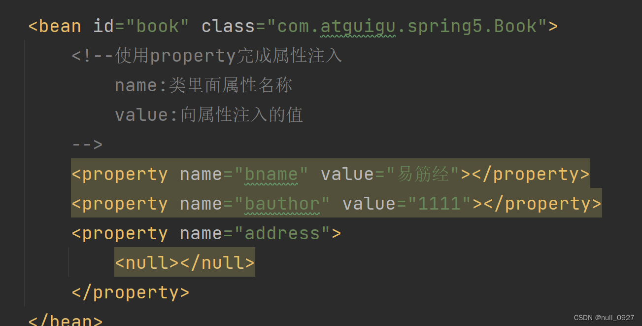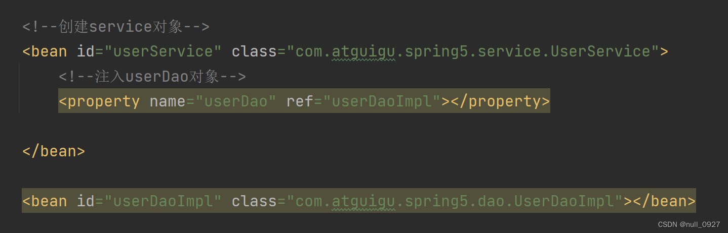 ②为bean的属性设置值和对其他bean的引用。(调用set方法)