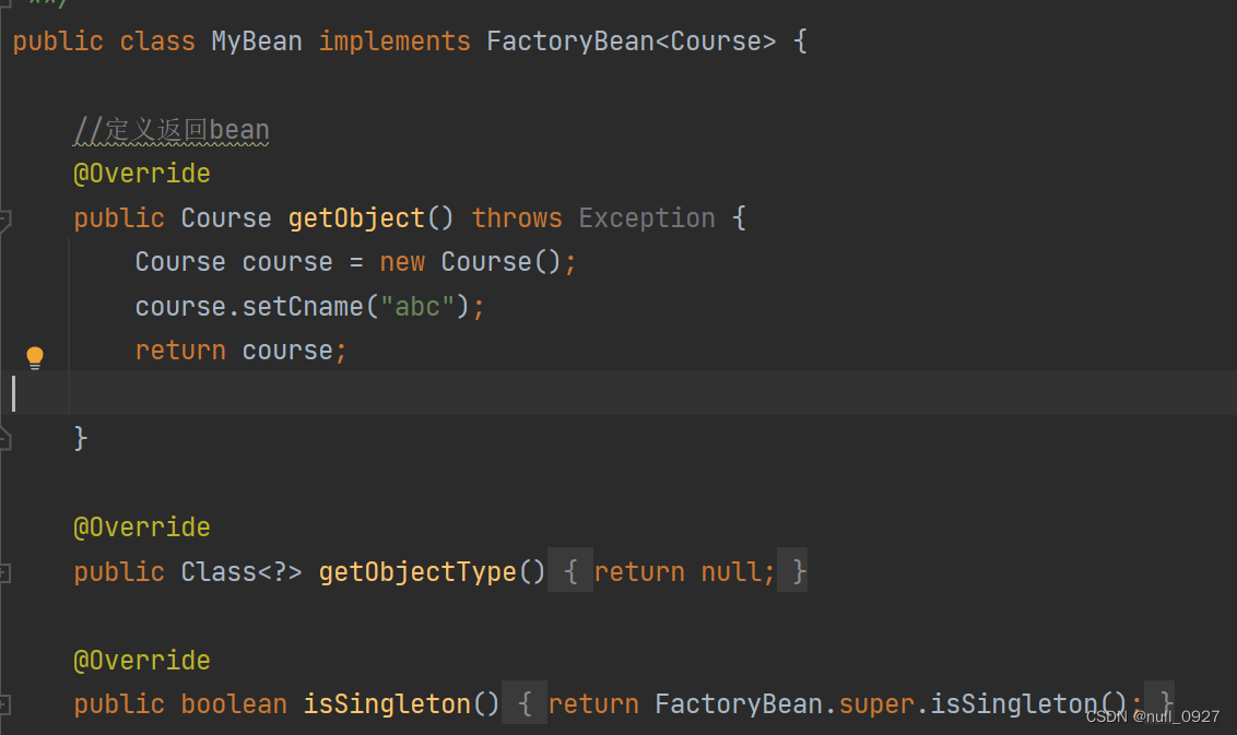 第一步:创建类,让这个类作为工厂bean,实现接口FactoryBean。