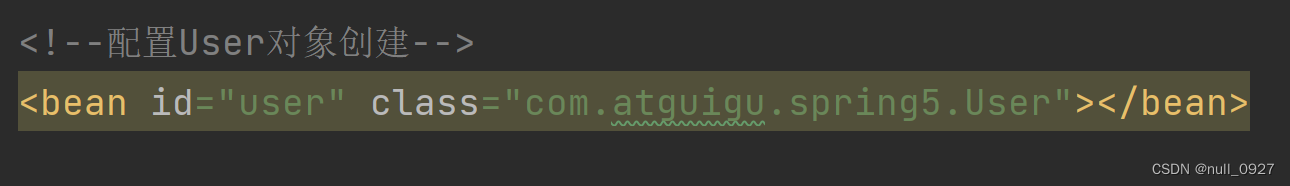 *在Spring配置文件中,使用bean标签,标签里面添加对应属性,就可以实现对象创建;