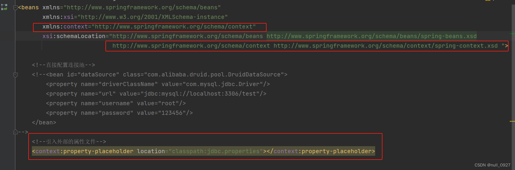 *把外部properties属性文件引入Spring配置文件中(*引入名称空间)