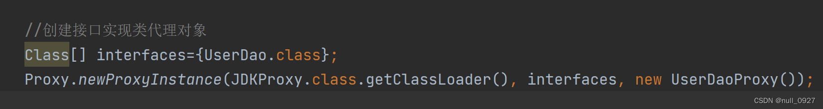 ①用Proxy里面的new ProxyInstance方法,创建接口实现类的代理对象。
