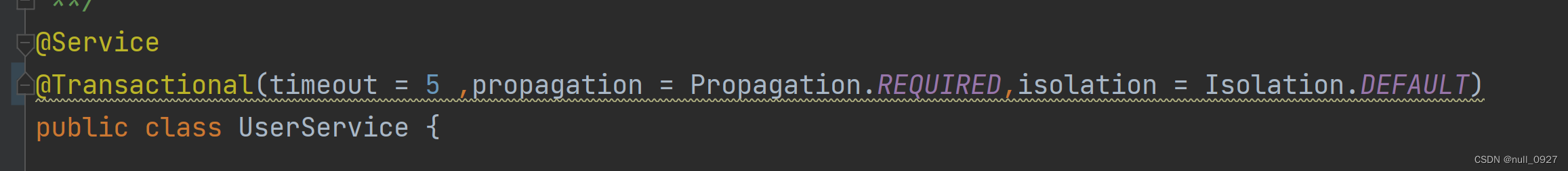 (3)在service类上面,或者servicel类里面的方法上面,添加事务注解。