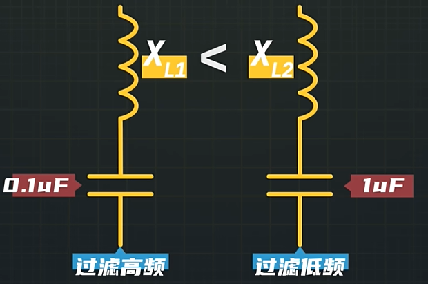 所以我们根据这个特性,通常使用小电容过滤高频噪声,大电容过滤低频噪声。