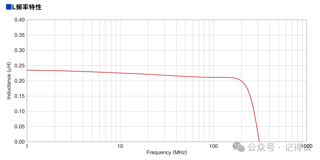 电感和电容一样,有其频率特性曲线 (频率和电感的曲线),有一定的频率使用范围,具体可以看下面的电感实际等效模型章节。下图是某电感规格书中给出的频率特性曲线。