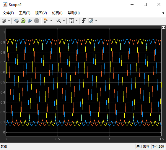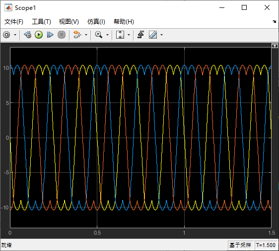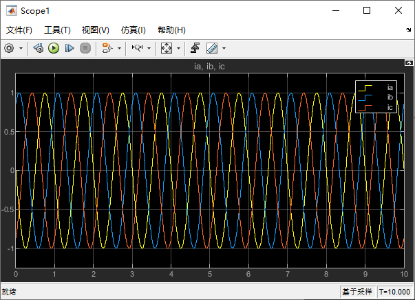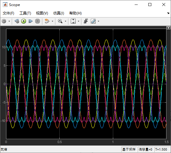 在 Scope1 中,是我们模拟的电机工作 a、b、c 三项电流: