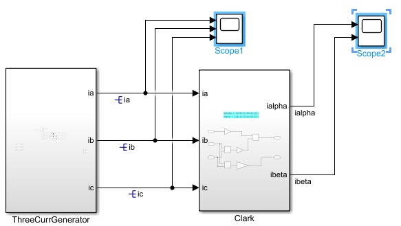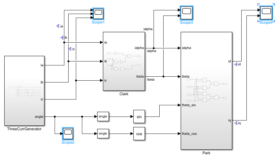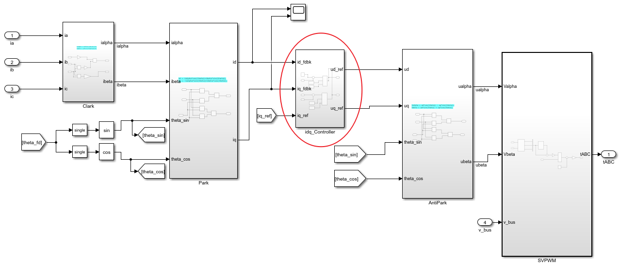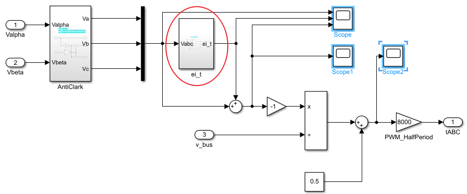 全部模型如下,其中 ThreeCurrGenerator 是我们模拟的三相电机电流: