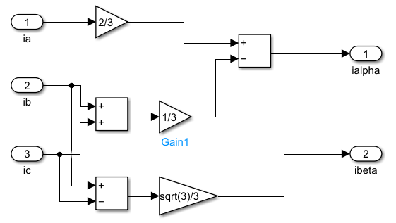 Clark 变换的主要作用是将三相信号 (A、B、C),其在数学上我们将这三项看做成间隔 120° 的矢量。转换成两个静态坐标系的信号 (α、β) 间隔 90° 的矢量。这可以简化后续的控制计算。