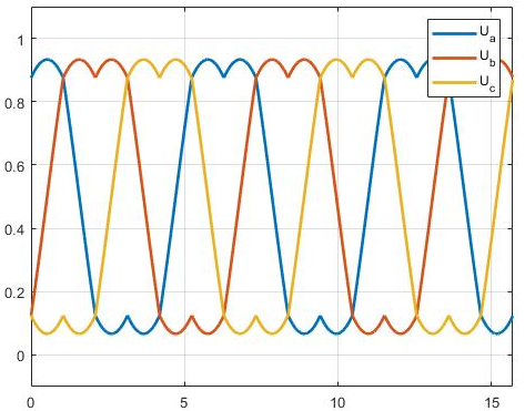 最后我们将输出的 SVPWM 值除以母线电压后加 0.5,此时我们输出的电压范围 0~1。