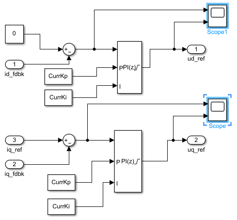 在 Scope4 中,是我们得到的 d、q 轴电流: