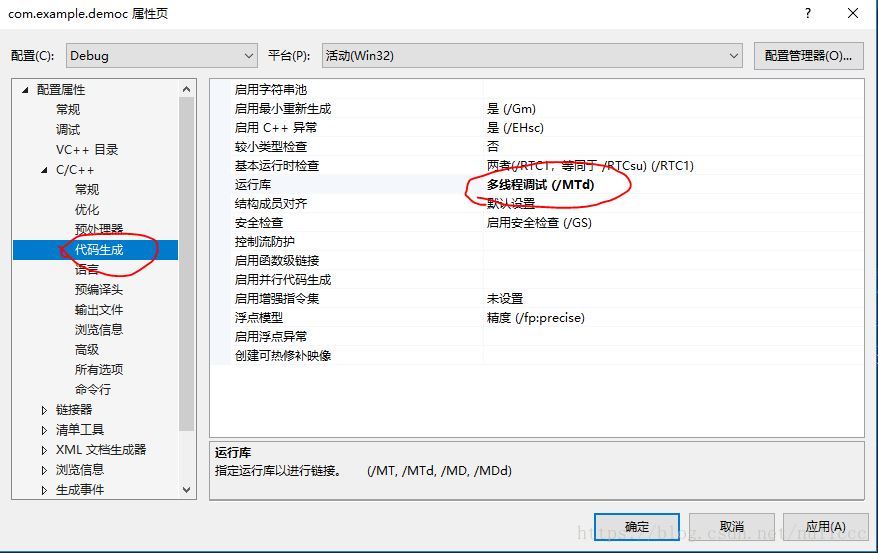 代码生成->运行库->改成多线程调试。这么做的原因我在之前的博客有写,你可以不关注他的原理,这无关紧要。